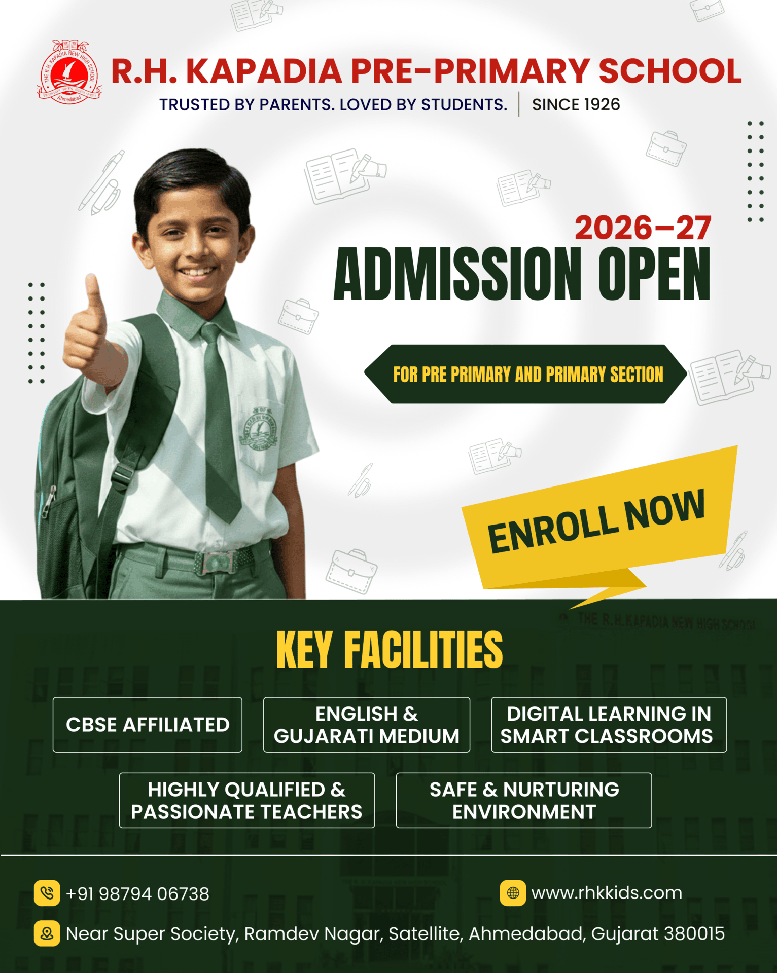 Admissions open for Play-Group, Nursery, Jr. Kg. and Sr. Kg. for 2025-2026 batch.